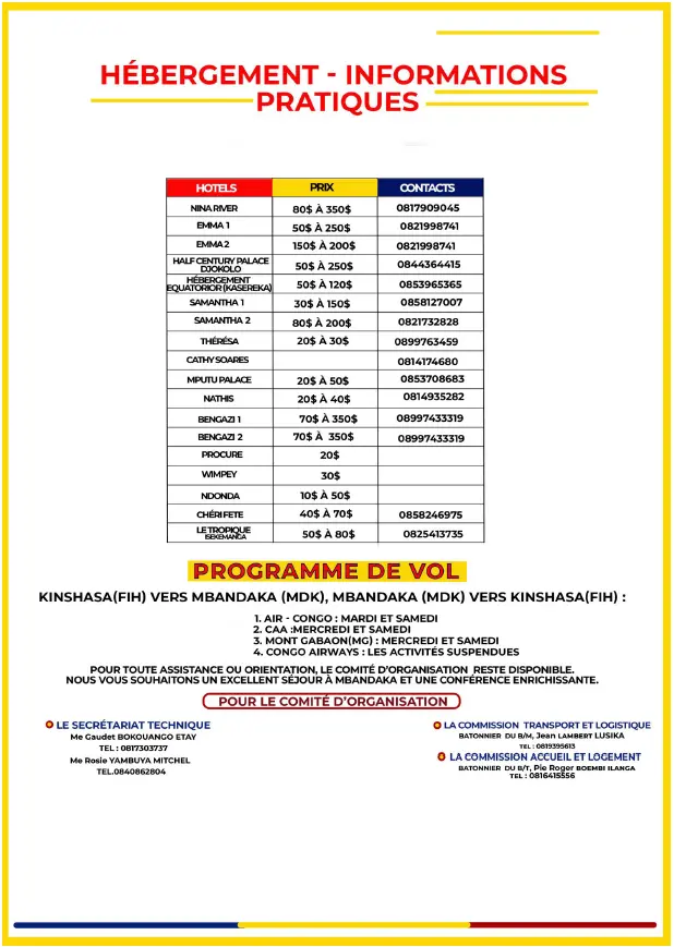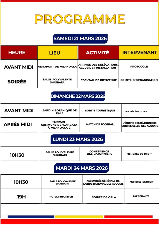 20ᵉ Conférence des Bâtonniers et Assemblée Générale de l'Ordre National des Avocats à MBANDAKA du 23 au 24 MARS 2025