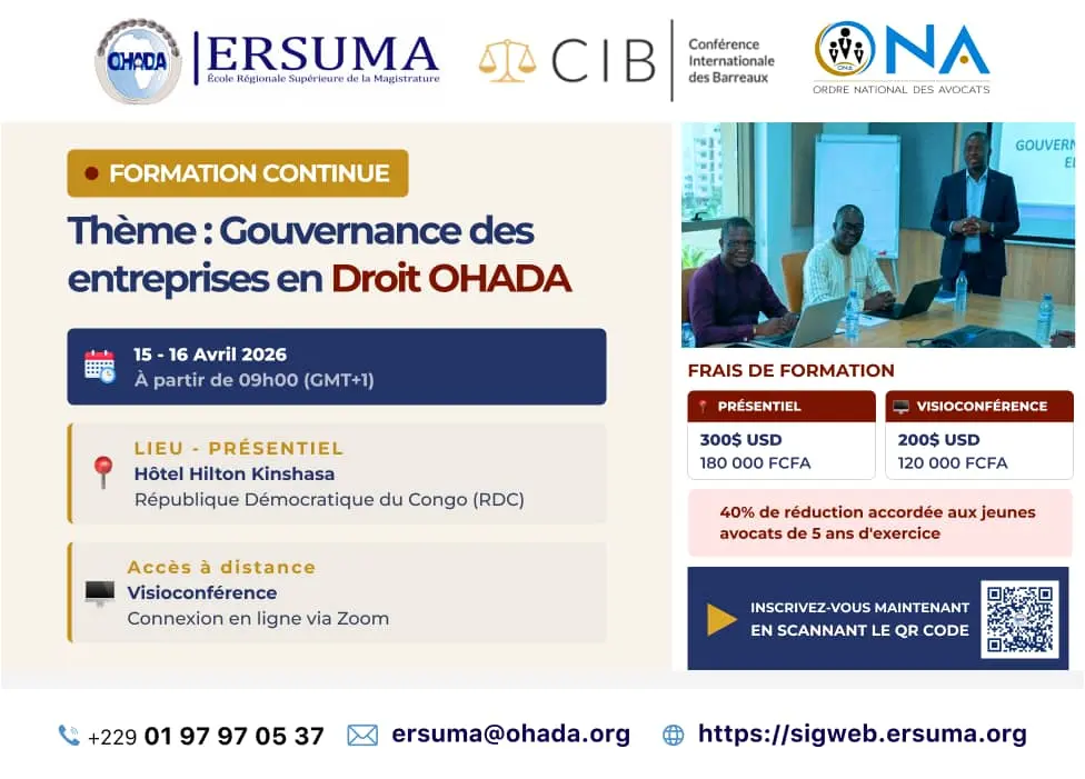 Cérémonie d’ouverture - Mot de bienvenue du Bâtonnier de l’Ordre National des Avocats de la RDC - Discours du Directeur Général de l’ERSUMA - Discours d’ouverture du Président de la CIB Photo de famille. |